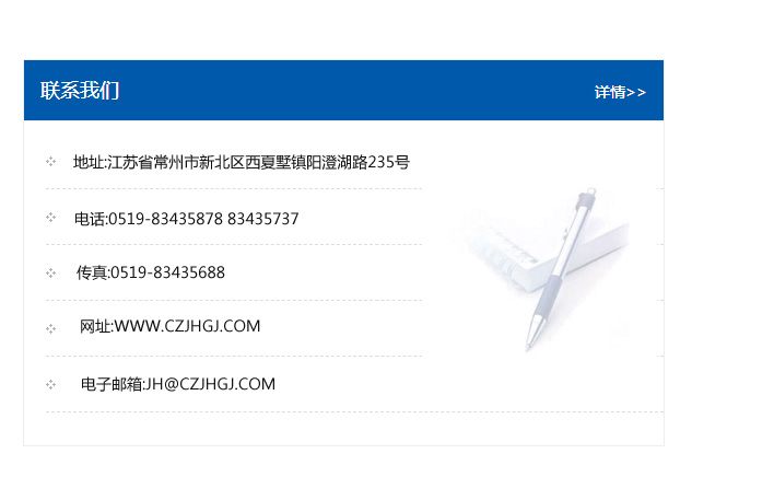 傳真:0519-83435688    郵編:213135    網址:WWW.czjhgj_com.anruibuy.com    電子郵箱:JH@czjhgj_com.anruibuy.com